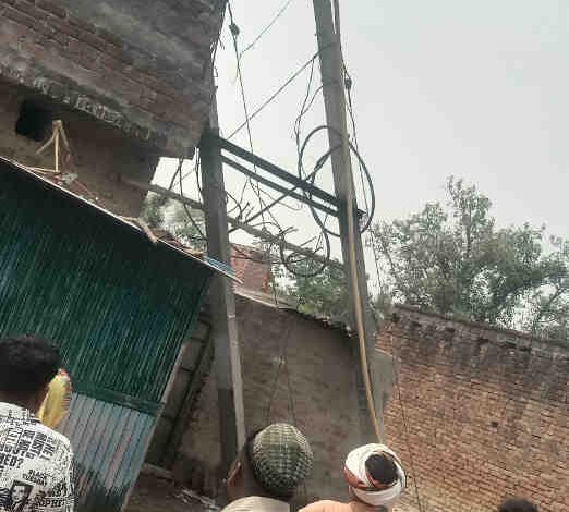 11000 लाइन पर पेड़ गिर जाने से खंभे पर बंधा हुआ ट्रांसफार्मर जमीन पर आ गिरा, खंभे के टूटने से बगल का मकान हुआ क्षतिग्रस्त