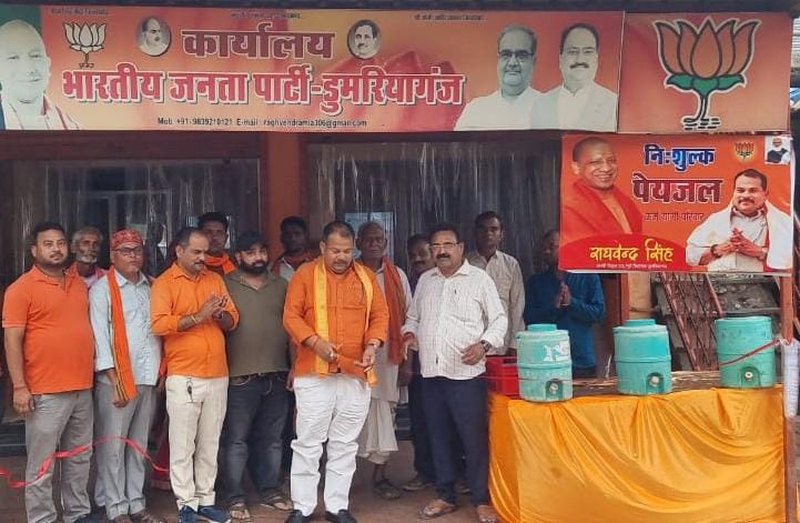 डुमरियागंज/सिद्धार्थनगर। तपती गर्मी में आमजन मानस को प्यास से राहत दिलाने को लेकर जिला परिषद मार्केट स्थित भाजपा कार्यालय पर निःशुल्क जल सेवा की व्यवस्था की गई हैं। सोमवार को भाजपा कार्यालय के सामने राहगीरों के लिए निःशुल्क जल प्याऊ कैंप लगाया गया, जिससे कि आने-जाने वाले आमजन, राहगीर, ठेलेवाले, रिक्शे वाले पानी पीकर अपना प्यास बुझा सके। पूर्व विधायक राघवेन्द्र प्रताप सिंह फीता काटकर निःशुल्क जल प्याऊ का शुभारंभ किया और बताया कि जल ही जीवन है, किसी के लिए पानी की व्यवस्था करना बहुत ही नेक कार्य है, जो समाज के हर व्यक्ति को करना चाहिए। हमारी सरकार सरकार और संगठन जनसेवा को ही सर्वाेपरि मानती हैं। इसी भावना के साथ यह छोटा-सा प्रयास जनता की सेवा में समर्पित है। इसके साथ पानी प्रकृति की देन है, इसको अनावश्यक रूप से बर्बाद ना करें अन्य देशों की तरह पानी के महत्व की सीख के लेनी चाहिए और जल संरक्षण हेतु आवश्यक कदम उठाने चाहिए। इस दौरान उन्होंने सभी को जल को व्यर्थ में न बहाने की शपथ दिलाई। इस दौरान पप्पू श्रीवास्तव, अजय अग्रहरि, राजन अग्रहरि, अशोक पाण्डेय, डम्पू पाण्डेय, गोविंद पाण्डेय, अमन गौड़, श्यामलाल आदि मौजूद रहें।