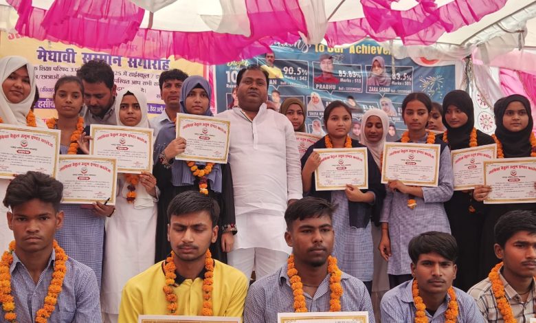 मेधावी छात्रों को प्रशस्ति पत्र व स्मृति चिन्ह देकर हसीब खान ने किया सम्मानित
