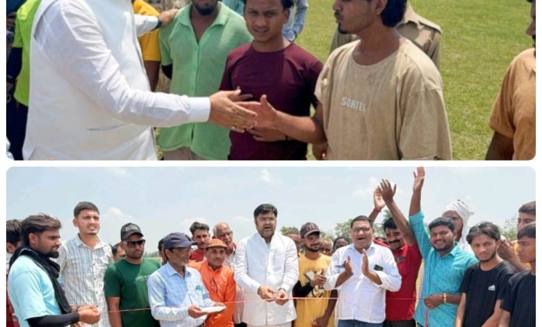 बढ़नी/सिद्धार्थनगर। विकास क्षेत्र बढ़नी के बरगदवा में आयोजित सद्भावना कप कैनवास बाल क्रिकेट प्रतियोगिता का आयोजन किया गया, जिसके मुख्य अतिथि क्षेत्रीय विधायक विनय वर्मा ने फीता काटकर क्रिकेट मैच का शुभारम्भ किया। विधायक ने खिलाड़ियों का परिचय प्राप्त कर कहा कि खेल भावना को बढ़ावा देने और बच्चों को हौसला देने का कार्य किया। उन्होंने कहा खेल न केवल शारीरिक और मानसिक विकास का माध्यम है, बल्कि अनुशासन, नेतृत्व और टीम भावना भी सिखाता है। कहा कि अगर बच्चों को सुविधाएं मिलें तो ग्रामीण क्षेत्रों से भी अच्छे-अच्छे खिलाड़ी अपनी प्रतिभा का प्रदर्शन करेंगे। इसलिए उन्होंने पांच करोड़ की लागत से मधवापुर में खेल स्टेडियम को स्वीकृत करवाया है। उसका निर्माण भी हो रहा है। विधायक विनय वर्मा ने ईश्वर से प्रार्थना किया कि हमारे क्षेत्र के बच्चे आगे चलकर प्रदेश और देश का नाम खेल जगत में रौशन करें। सद्भावना कप कैनवास बाल क्रिकेट प्रतियोगिता में बसन्तपुर टीम व बढ़नी की टीम के बीच खेला गया। इसमें बसन्तपुर के खिलाड़ियों ने बढ़नी की टीम को सात विकेट से हराकर अगले दौर में प्रवेश किया। इस दौरान रामदास मौर्य, हरिराम निषाद, रवि शुक्ला, विजय दत्त पाण्डेय, रत्नेश सोनी विष्णु सिंह, विपिन सोनी, आदि लोग मौजूद रहे।