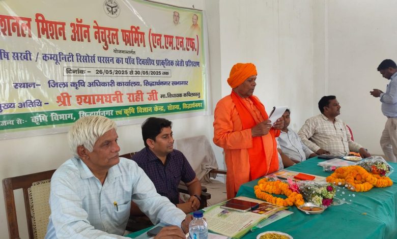सिद्धार्थनगर। नेशनल मिशन आन नेचुरल फार्मिंग योजनान्तर्गत क़ृषि सखी/कम्युनिटी रिसोर्स पर्सन को लेकर जिला क़ृषि कार्यालय सिद्धार्थनगर में पांच दिवसीय प्रशिक्षण का शुभारम्भ सदर विधायक श्याम धनी राही ने किया। जिसमे पांच ब्लॉक के कुल 72 प्रतिभागी उपस्थित रहे। सोमवार को कार्यशाला में मुख्य अतिथि के रूप में सदर विधायक श्यामधनी राही ने क़ृषि में प्राकृतिक खेती पर चर्चा किये तथा उन्होंने क़ृषि सखी के महत्ता को बहुत ही महत्वपूर्ण बताया। और क़ृषि विभाग एवं सरकारी कल्याणकारी योजनाओं एवं नीतियों की जानकारी दिए। उन्होंने सभी से अनुरोध किया कि आप सभी प्राकृतिक खेती से जुड़े और लाभ उठाये। तथा उन्होंने आयोजक मण्डल, वैज्ञानिकगण तथा अधिकारी /कर्मचारीगण की सराहना करते हुए अपेक्षित सहयोग की बात कहें! इसी क्रम में क़ृषि विशेषज्ञ सलाहकार क़ृषि विभाग राकेश शर्मा राष्ट्रीय प्राकृतिक खेती मिशन के उद्देश्य एवं क़ृषि सखी/ सी. आर. पी. के इस मिशन में इनकी भूमिका एवं महत्ता पर प्रशिक्षित किये। क़ृषि विज्ञान केंद्र के वैज्ञानिक श्री प्रवेश कुमार जी ने प्राकृतिक खेती की आवश्यकता, महत्ता तथा उनके तरीके के बारे में विस्तृत प्रशिक्षण दिए। श्यामनारायण सिंह ने प्राकृतिक खेती पर गाय की आवश्यकता एवं प्राकृतिक खेती के होने वाले लाभ के बारे में विस्तृत जानकारी दिए इसी क्रम में श्रसर्वजीत ने जीवमृत, घनजीवामृत एवं पर्यावरण विद भुवनेश्वर नाथ पाण्डेय ने प्राकृतिक खेती के चार आयामों तथा प्राकृतिक खेती से पर्यावरण को किस प्रकार शुद्ध करेगा उस पर विस्तृत जानकारी साझा किये जिला क़ृषि अधिकारी मुहम्मद मुजम्मिल तथा कार्यक्रम का संचालन संस्था के सचिव श्रीधर पाण्डेय ने किया। कार्यशाला में संस्था के सुमित पाण्डेय, धर्मेंद्र शर्मा, सुनील कुमार गौतम, उमेश यादव एवं गणेश चौरसिया आदि उपस्थित रहे।