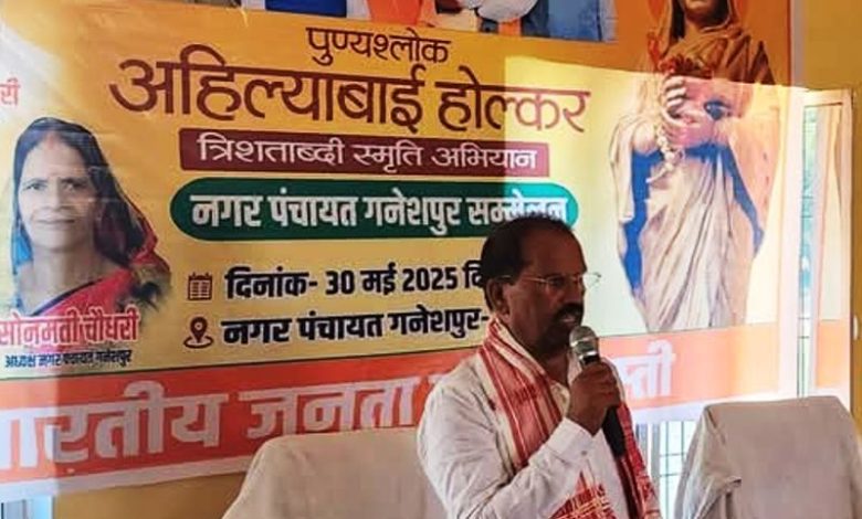 बस्ती। देश में 300 वर्ष पूर्व माता अहिल्या बाई होल्कर ने जो सपना देखा था, प्रधानमंत्री नरेन्द्र मोदी आज महिलाओं को सम्मान देकर उसे साकार कर रहे हैं। यह विचार पूर्व विधायक भारतीय जनता पार्टी के वरिष्ठ नेता दयाराम चौधरी ने शुक्रवार को अहिल्याबाई होल्कर त्रिशताब्दी के मौके पर गनेशपुर नगर पंचायत के सभागार में आयोजित कार्यक्रम में व्यक्त किया। कहा कि अहिल्याबाई एक सामान्य परिवार में जन्मीं थीं, उनके जीवन का संघर्ष हम सबको जानना चाहिए। अहिल्या बाई होल्कर केवल एक शासिका नहीं थीं, वे धर्म, न्याय, सेवा और स्त्री शक्ति का प्रतीक भी थीं। पूर्व विधायक दयाराम चौधरी ने कहा कि समाज सुधार, कृषि सुधार, जल प्रबंधन, पर्यावरण रक्षा, जनकल्याण और शिक्षा के प्रति समर्पित होने के साथ-साथ अहिल्याबाई का शासन न्याय प्रिय था। अगर अहिल्याबाई होल्कर न होतीं, तो शायद आज हम काशी का यह भव्य रूप न देख पाते। उन्होंने धर्म और संस्कृति के पुनरुत्थान के लिए जो कार्य किए, वह इतिहास में अद्वितीय हैं. वह कभी किसी युद्ध में नहीं हारीं और उन्होंने शासन से ज्यादा सेवा को महत्व दिया। उनके जीवन से हम सबको प्रेरणा लेना चाहिये। कार्यक्रम में मुख्य रूप से शिव नरायन चौधरी, गजेन्द्र चौधरी, रामवृक्ष यादव, गुड्डू, रामलखन यादव, मोहित चौधरी, राजन पाण्डेय, पवन मिश्रा, आशीष चौधरी, लालचंद चौधरी, राम बहादुर वर्मा, दुर्गा चौधरी, अभिषेक चौधरी, महेन्द्र चौधरी, शीला देवी, पूनम देवी, कुसुम, नीलम, रेखा, सावित्री, प्रीती प्रजापति, सीतादेवी, सिंगारी देवी, राजवन्ती, रेखा प्रजापति के साथ ही बड़ी संख्या में क्षेत्रीय नागरिक, महिलाओं की उपस्थिति रही।