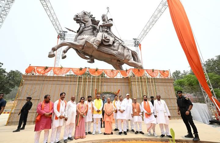 सीएम योगी और सुभासपा के अध्यक्ष ओम प्रकाश राजभर द्वारा किया गया महाराजा सुहेलदेव के स्मारक का उदघाटन