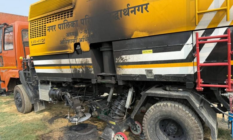 आधुनिकरोड स्वीपिंग मशीन में अराजक तत्वों नें लगाया आग