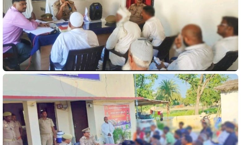 बढ़नी/सिद्धार्थनगर। पुलिस अधीक्षक सिद्धार्थनगर डॉ0 अभिषेक महाजन के आदेश के क्रम में एवं अपर पुलिस अधीक्षक सिद्धार्थनगर प्रशान्त कुमार प्रसाद के कुशल निर्देशन में व क्षेत्राधिकारी शोहरतगढ़़ सुजीत कुमार राय द्वारा बुधवार को थाना ढ़ेबरुआ व कठेला समयमाता थाना परिसर पर आगामी त्यौहार मोहर्रम व श्रावण मास को सकुशल सम्पन्न कराये जाने हेतु अपने-अपने थाना क्षेत्र के भिन्न-भिन्न ग्रामों के ग्राम प्रधान, सम्भ्रान्त व्यक्तियो, धर्मगुरुओं/सदस्यों के साथ पीस कमेटी की मीटिंग की गई। सभी को शान्तिपूर्ण, सौहार्दपूर्वक, त्यौहार को मनाये जाने की अपील की गयी।बैठक में मौजूद सभी व्यक्तियों से त्यौहार के दृष्टिगत शासन/उच्चाधिकारीगण द्वारा प्राप्त गाइडलाइन से अवगत कराया गया। शान्ति व्यवस्था को मुख्य रुप से विषयवस्तु बनाकर विस्तृत चर्चा किया गया तथा आदेशदृनिर्देश से अवगत कराया गया। वहीं उपस्थित सभी लोगों की समस्याओं को भी सुना गया एवं आवश्यक दिशा निर्देश दिया गया। इस दौरान प्रभारी निरीक्षक ढेबरूआ गौरव सिंह व थानाध्यक्ष कठेला समयमाता शेषनाथ यादव सहित अन्य अधिकारी कर्मचारीगण मौजूद रहें।