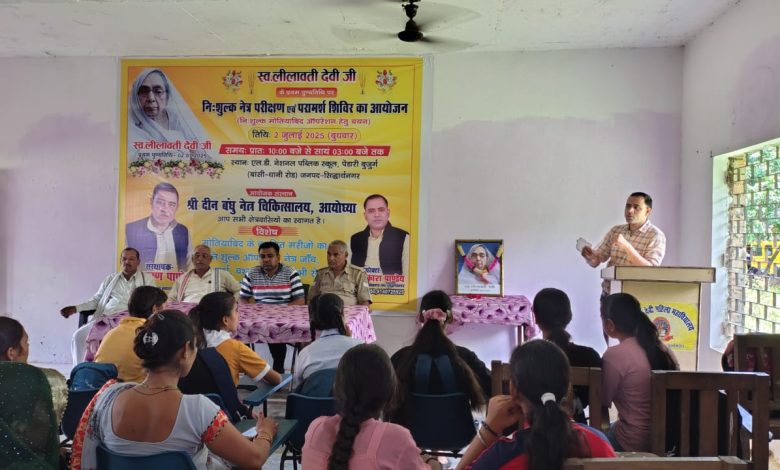 सिद्धार्थनगर। 2 जुलाई 2025 दिन बुधवार को स्वर्गीय लीलावती देवी जी का प्रथम पुण्यतिथि एलडी पब्लिक इंटर कॉलेज पेंडारी बुजुर्ग बांसी धानी रोड सिद्धार्थ नगर में मनाया गया इस अवसर पर निःशुल्क नेत्र परीक्षण एवं परामर्श शिविर का भी आयोजन किया गया बाहर से बुलाए गए डॉक्टरों का एक पैनल बैठाया गया जिसमें क्षेत्र के तमाम ऐसे जरूरतमंद और आंख के ऐसे पेशेंट का निशुल्क नेत्र परीक्षण कर निशुल्क दवाइयां और चश्मा दिया गया कुछ पेसेंट मोतियाबिंद के शिकार पाए गए उनका जांच कर उनसे एक फॉर्म भरवाया गया कॉलेज के प्रबंधक डॉक्टर वेद प्रकाश पांडे जी ने बताया कि ऐसे लोगों को हॉस्पिटल में भेज करके निशुल्क उनका ऑपरेशन कराया जाएगा उनका एक भी रूपये खर्च नहीं होगा संस्था के संस्थापक श्री बालकृष्ण पांडे पूर्व जिला पंचायत सदस्य ने अपने संबोधन में कहा कि क्षेत्र में ऐसे तमाम लोग हैं जो आर्थिक संसाधन के अभाव में गोरखपुर लखनऊ और बाहर के डॉक्टरो से अपना इलाज नहीं करा पाते ऐसी स्थिति में यह निशुल्क नेत्र परीक्षण एवं परामर्श शिविर का आयोजन एक पुनीत कार्य है इस कार्यक्रम में लगभग ढाई सौ से ऊपर के लोगों का नेत्र परीक्षण किया गया जिसमें 180 से ऊपर के लोगों को निशुल्क चश्मा दिया गया बाकी लोगों को दवा दिया गया लगभग 30 से उपर की संख्या में लोगो क़ो मोतियाबिंद के शिकार पाए गए जिनसे एक एक फॉर्म भरवाया गया जिनका आगामी महीने में ऑपरेशन किया जाएगा कार्यक्रम में क्षेत्र से उपस्थित लोगों में घनश्याम पांडे जी अजीत मिश्रा जी बबलू मिश्रा जी सुनील पांडे जी सुनील दुबे जी रविंद्र दुबे जी झारखंडे पांडे जी सत्येंद्र पांडे जी शिवम मिश्रा जी सरबजीत पांडे जी पूर्णमासी हरिश्चंद्र जानकी देवी राममिलन शारदा देवी धींमो माधुरी सावित्री धर्मावती कृष्णमती रामचंद्र सौरभ गुप्ता कैलाशी देवी काजल चौहान राम केवल इंद्रावती अंशु राज किशोरी सुरेंद्र सुमित्रा गौरी शंकर अहमद अली कुसुम देवी बलिराम रंजन सरजू देवी झीनका देवी सुग्रीव समसुल हक रामकुमार भगवती यादव कौशल्या मुकदम ओमप्रकाश हुसैनी पूर्णमासी सोनी यादव रामनाथ बंसी यादव कोमल गुप्ता अदालती विद्यावती एवं तमाम सारे लोगों ने पहुंच कर आँख चेकप कराया और दवाई के साथ चस्मा प्राप्त किया।