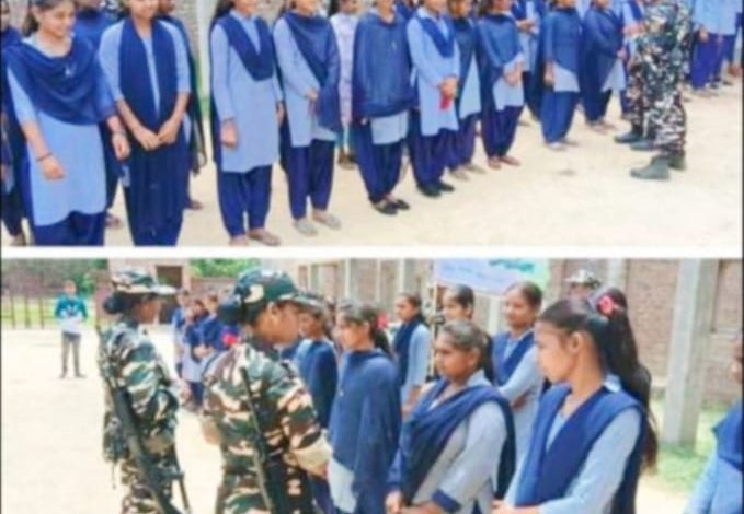 शोहरतगढ़़/सिद्धार्थनगर। 43वीं वाहिनी सशस्त्र सीमा बल के सीमा चौकी चरिगवा द्वारा सीमा पर छात्र-छात्राओं को सेना में भर्ती होने हेतु जागरूकता अभियान चलाया गया। सोमवार को 43वीं वाहिनी सशस्त्र सीमा बल की सीमा चौकी चरिगवा के जवानों द्वारा उच्चतर माध्यमिक विद्यालय चरिगवा के छात्र-छात्राओं को सीएपीएफ सेना में भर्ती होने हेतु जागरूक किया गया। यह जानकारी सहायक कमाण्डेंट रणवीर सिंह द्वारा बताया गया कि सीमाई क्षेत्र के छात्र-छात्राओं के लिए प्रतियोगी परीक्षाओं की तैयारी हेतु 43वीं वाहिनी सशस्त्र सीमा बल द्वारा चरिगवा, पिपरा और धनौरा मुस्तहकम पंचायत भवनों में पुस्तकालयों के संचालन किया गया है, जिसमें सीमाई क्षेत्र के छात्र-छात्रा सरकारी व निजी क्षेत्र के विभिन्न पदों पर नियुक्त होने हेतु प्रतियोगी परीक्षाओं की तैयारी करते है। साथ ही इन पुस्तकालयों में एसएसबी के अधिकारी/कार्मिकों द्वारा समय समय पर सीमाई क्षेत्र के छात्र-छात्राओं के लिए क्लास भी चलाया जाता है, जिससे उन छात्र-छात्राओं को केन्द्रीय सशस्त्र बलों में और विभिन्न प्रतियोगी परीक्षाओं की तैयारी और चयन की प्रक्रियों के बारें में मार्गदर्शन किया जाता है, जिससे सीमावर्ती क्षेत्र के प्रतिभावान छात्र-छात्राए प्रतियोगी परीक्षाओं में सफल होकर अपनी सेवा से राष्ट्र के विकास में अपना योगदान दे सकें।