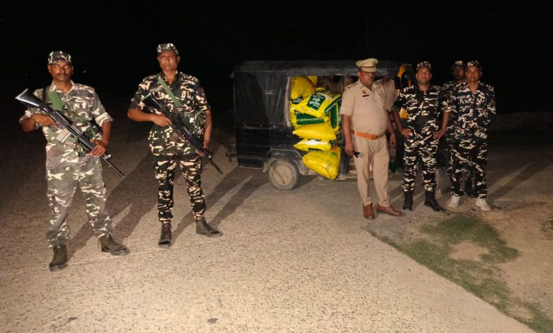 इंडोनेपाल बॉर्डर पर एसएसबी व पुलिस ने पकड़ा टैम्पो समेत 19 बोरी उर्वरक