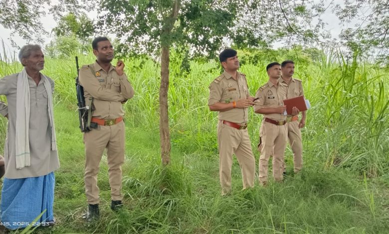 बलरामपुर। महराजगंज तराई (बलरामपुर) स्थानीय थाना क्षेत्र के अंतर्गत ग्राम विजयीडीह गाँव के दक्षिण तरफ गन्ने के खेत में लगे बबूल के पेड़ से अज्ञात युवक का शव देखकर ग्रामीणों में दहशत है। पेड़ से लटकता शव देखकर ग्रामीणों ने घटना की सूचना स्थानीय थाने पर दी। घटना की सूचना पर पुलिस फोर्स के साथ फॉरेंसिक टीम ने भी मौके पर पहुंच कर शव को पेड़ से उतारा गया। अज्ञात युवक के शव की पहचान नहीं हो पाई है। युवक काला जींस और नीला शर्ट पहने हुए था तथा युवक की जेब से गोंडा से बहादुरगढ़ व आनंद विहार से सीतापुर जंक्शन का रेलवे टिकट भी मिला है। युवक के दाहिने हाथ में शिवा व अनीता लिखा हुआ साथ ही शंकर भगवान का टैटू भी बना हुआ है।अभी तक युवक की पहचान नहीं हो पाई है। इस घटना से क्षेत्र में चर्चा का विषय बना हुआ है। क्षेत्रीय लोग की माने तो किसी व्यक्ति द्वारा इसकी हत्या करके बबूल पेड़ से लटका दिया गया तथा बेल्ट से हाथ पीछे की तरफ बांध दिया गया है। थाना प्रभारी अखिलेश कुमार पांडे ने बताया कि अभी तक युवक की पहचान नहीं हो पाई है। शव को कब्जे में लेकर पीएम के लिए भेज दिया गया है। छानबीन की जा रही है।