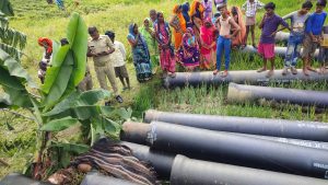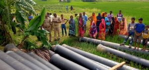 पाइप उतरवाते समय गिरा भराभरा के पाइप मौके पर एक की मौत, करमा/सोनभद्र (बिनोद मिश्रा)