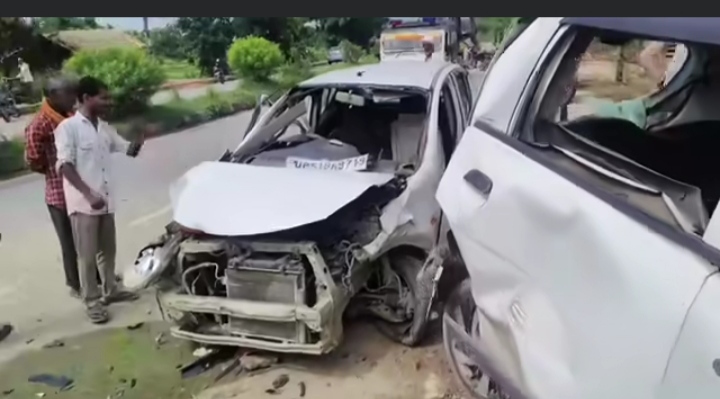 खड़ी गाड़ी में पीछे से वेलेनो हुंडई ने मारी जोरदार टक्कर