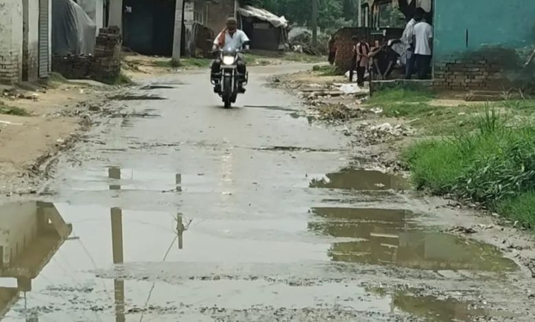 सोननगर गांव की सड़क पर जलभराव आवागमन में परेशानी