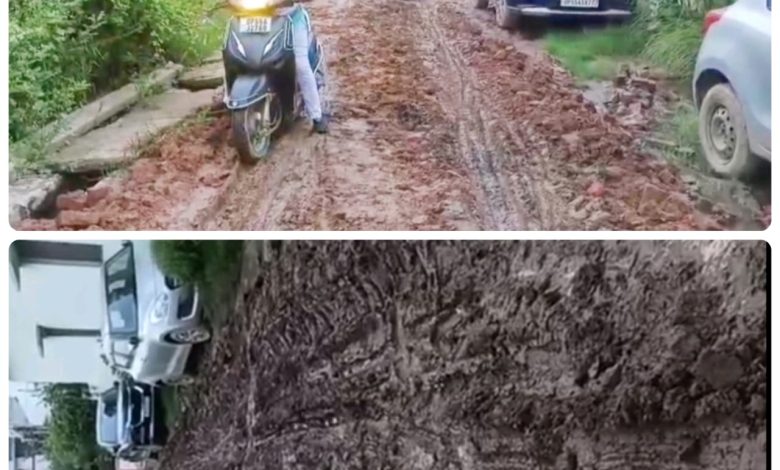 सड़क बनी दलदल, दिखावे के लिए हुआ काम, बुजुर्ग फंस रहे व गिर रहे हैं बच्चे