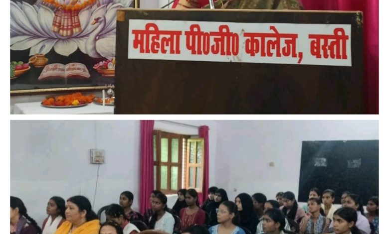 बस्ती। महिला महाविद्यालय बस्ती में बीए प्रथम वर्ष में नवप्रवेशित छात्राओं हेतु, (दीक्षारम्भ संस्कार) कार्यक्रम का आयोजन किया गया। कार्यक्रम का शुभारंभ महाविद्यालय की प्राचार्य प्रोफेसर सुनीता तिवारी के द्वारा मां सरस्वती की प्रतिमा पर माल्यार्पण एवं दीप प्रज्ज्वलन कर किया गया। महाविद्यालय की छात्राओं द्वारा सरस्वती वंदना प्रस्तुत किया गया कार्यक्रम का आयोजन बीए प्रथम वर्ष की प्रवेश समिति के सदस्यों द्वारा किया गया। तत्पश्चात महाविद्यालय की सभी शिक्षिकाओं ने नवप्रवेशित छात्राओं के समक्ष अपने विषय सहित अपना परिचय प्रस्तुत किया। छम्च्2020समन्वयक डॉ संतोष यदुवंशी द्वारा राष्ट्रीय शिक्षा नीति 2020 द्वारा शिक्षा को समग्र, व्यवसायपरक, जीवंत और न्याय संगत रूप में अपनाने और इसके द्वारा भारत को वैश्विक ज्ञान महाशक्ति बनाने पर जोर दिया साथ ही साथ छम्च्2020के मार्किंग स्कीम को भी विस्तार पूर्वक समझाया। महाविद्यालय की प्राचार्य प्रोफेसर सुनीता तिवारी ने छात्राओं को संबोधित करते हुए कहा कि हमारा प्राथमिक प्रयास छात्राओं की सुरक्षा तथा उनकी समस्याओं का निराकरण करना है। प्राचार्य ने अपने आशीर्वचन से छात्राओं को मार्गदर्शन किया। और नई शिक्षा नीति 2020 के महत्व और विषय वस्तु को रेखांकित किया।कार्यक्रम के अंत में नई राष्ट्रीय शिक्षा नीति 2020 पर संक्षिप्त व्याख्यान और धन्यवाद ज्ञापन डॉक्टर रघुवर पाण्डेय ने किया। कार्यक्रम का संचालन डॉ नूतन यादव ने किया। इस अवसर पर डॉ सीमा सिंह, डॉ वीना सिंह,डॉ स्मिता सिंह, डॉ रूचि, श्रीवास्तव, डॉ संतोष यदुवंशी, नेहा परवीन, पूनम यादव,डॉ कमलेश पाण्डेय, डॉ प्रियंका मिश्रा, कुमारी मोनी पाण्डेय आदि उपस्थित रहें।
