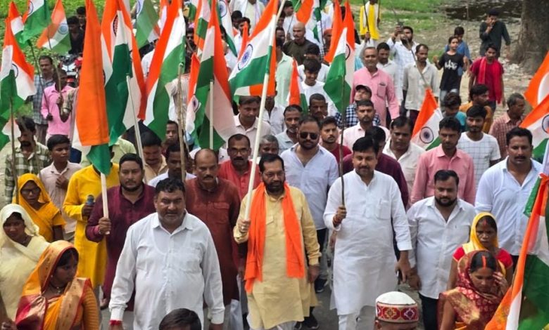 पदयात्रा में मंडल के पदाधिकारी, विभिन्न मोर्चों के अध्यक्ष, शक्ति केंद्र संयोजक, बूथ अध्यक्ष और स्थानीय जनसमुदाय ने उत्साहपूर्वक भाग लिया। पूरे मार्ग में “भारत माता की जय” और “वंदे मातरम्” के नारों से वातावरण गूंज उठा। हाथों में लहराते तिरंगे और देशभक्ति गीतों ने माहौल को राष्ट्रमय बना दिया। कार्यक्रम के मुख्य अतिथि, पयागपुर विधायक सुभाष त्रिपाठी ने कहा— “तिरंगा हमारी आन, बान और शान का प्रतीक है। यह हमें देश की एकता, अखंडता और बलिदान की याद दिलाता है। इसके सम्मान की रक्षा करना हर नागरिक का कर्तव्य है।” इस अवसर पर विधानसभा संयोजक निशंक त्रिपाठी, जिला उपाध्यक्ष रणविजय सिंह, मंडल प्रभारी संजय राव,मडंल अध्यक्ष कटका श्री राम निवाष निषाद, मंडल अध्यक्ष हुजूरपुर दुर्गेश कुमार सिंह रैकवार, मंडल महामंत्री विक्रम सिंह, मंडल उपाध्यक्ष चंद्रवीर सिंह, मंडल अध्यक्ष (किसान मोर्चा) ठाकुर प्रसाद मिश्रा, मंडल उपाध्यक्ष अजय सिंह, अरविंद सिंह, विजय भान सिंह (सेक्टर संयोजक), शिवदयाल सिंह (सेक्टर संयोजक), रामू सिंह प्रधान, अटल सिंह प्रधान, आशीष भूटानी, त्रिवनी सिंह, दिलीप सिंह, दिनेश प्रताप सिंह, मनोज सिंह, मिंटू सिंह, सुधीर सिंह भयंकर, पंकज राव, हुकुम सिंह, पवन सिंह, वीरू सिंह, राकेश बोट, सतीश मौर्या, दीपक शर्मा, सूरज शुक्ला (सेक्टर संयोजक), विद्याराम यादव (सेक्टर संयोजक), राम जी निषाद (मंडल मंत्री), भूपचंद्र सरोज, रीना आर्य (मंडल उपाध्यक्ष), पंकज लोधी, मोनू सोनी, आकाश चौधरी, रामू निषाद (बूथ अध्यक्ष) एवं खुशहाल चौधरी,अकिंत सिंह,अनिल वर्मा,विजय भान सिंह,कुसुम चौहान,राम रस लोधी सहित हजारों लोग मौजूद रहे।
