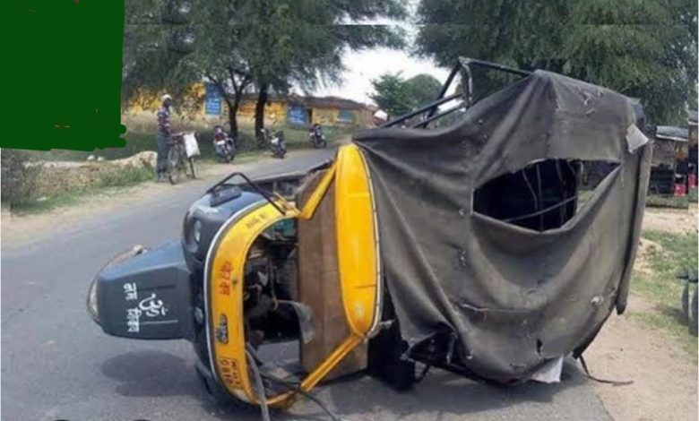 गौहनियां गांव के समीप टेम्पों अनियंत्रित होकर सड़क पर पलटा
