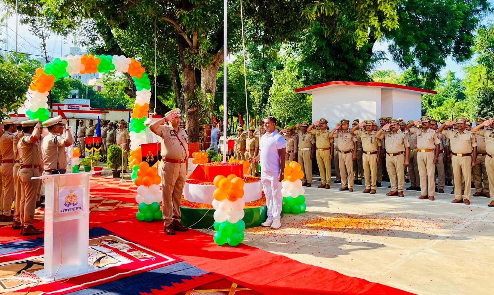 रिजर्व पुलिस लाइन में राष्ट्र के 79वें स्वतंत्रता दिवस के अवसर पर पुलिस अधीक्षक बहराइच द्वारा किया गया ध्वजा-रोहण