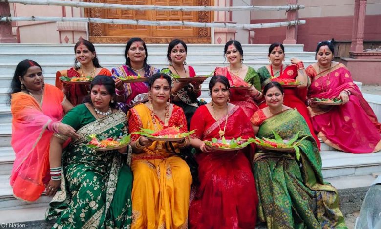 हरतालिका तीज पर आयोजित कार्यक्रम में भक्तिगीतों पर झूमीं महिलायें