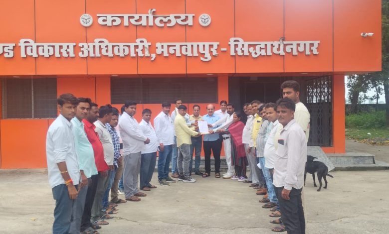 भनवापुर/सिद्धार्थनगर। ग्राम रोजगार सेवक पंचायत मित्र वेलफेयर एसोसिएशन ने सोमवार को अपनी मांगों को लेकर जोरदार विरोध दर्ज कराया। पहले उन्होंने खंड विकास अधिकारी भनवापुर विनोद मणि त्रिपाठी को ज्ञापन सौंपा और उसके बाद डुमरियागंज तहसील पहुंचकर उप जिलाधिकारी को ज्ञापन देकर बीएलओ (ठस्व्) एवं क्रॉप सर्वे कार्य से मुक्ति की मांग की।संगठन ने कहा कि शासनादेश संख्या 4231/38-7-2011-02 नरेगा/05टी.सी. दिनांक 07.10.2021 के विपरीत रोजगार सेवकों से लगातार निर्वाचन और क्रॉप सर्वे कार्य लिया जा रहा है। ज्ञापन में आरोप लगाया गया कि अधिकारियों व ग्राम प्रधानों द्वारा रोजगार सेवकों का उत्पीड़न भी हो रहा है। हाल ही में बर्डपुर ब्लॉक की ग्राम पंचायत महादेवा कुर्मी की रोजगार सेविका कृष्णावती चौधरी पर मतदाता सूची से नाम काटने का आरोप लगाकर रिपोर्ट दर्ज कराई गई और सेवा समाप्ति की कार्रवाई शुरू कर दी गई है। एसोसिएशन ने इसे निराधार बताते हुए उच्च स्तरीय जांच की मांग की है। संगठन ने स्पष्ट किया कि क्रॉप सर्वे लेखपाल का कार्यक्षेत्र है, लेकिन इसे जबरन रोजगार सेवकों पर थोपा जा रहा है। इसमें यदि कोई त्रुटि होती है तो कार्रवाई रोजगार सेवकों पर की जाती है। रोजगार सेवकों ने चेतावनी दी है कि यदि उनकी मांगों पर सकारात्मक निर्णय नहीं लिया गया तो 25 अगस्त से भनवापुर विकासखंड में सभी कार्यों का अनिश्चितकालीन बहिष्कार किया जाएगा। इसकी संपूर्ण जिम्मेदारी शासन-प्रशासन की होगी। ज्ञापन देने वालों में राजकुमार चौधरी, अजय यादव, सतीश शुक्ला, प्रभुनाथ यादव, संगीता देवी, अशोक कुमार,जोखू मौर्य,सूर्य प्रकाश, विजय कुमार यादव,राम प्रसाद, सलमान मलिक, बृजेश पांडे व नीरज तिवारी समेत अन्य रोजगार सेवक शामिल रहे।