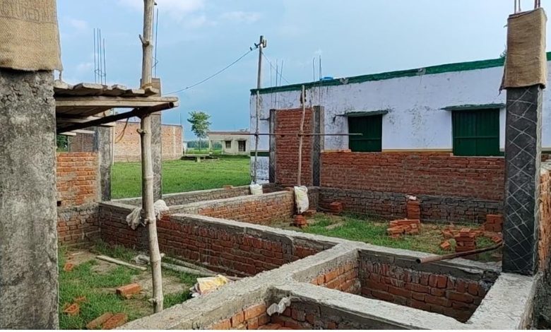 आंगनवाड़ी भवन निर्माण में घटिया सामग्री से हो रहा है निर्माण अधिकारी बने अनजान