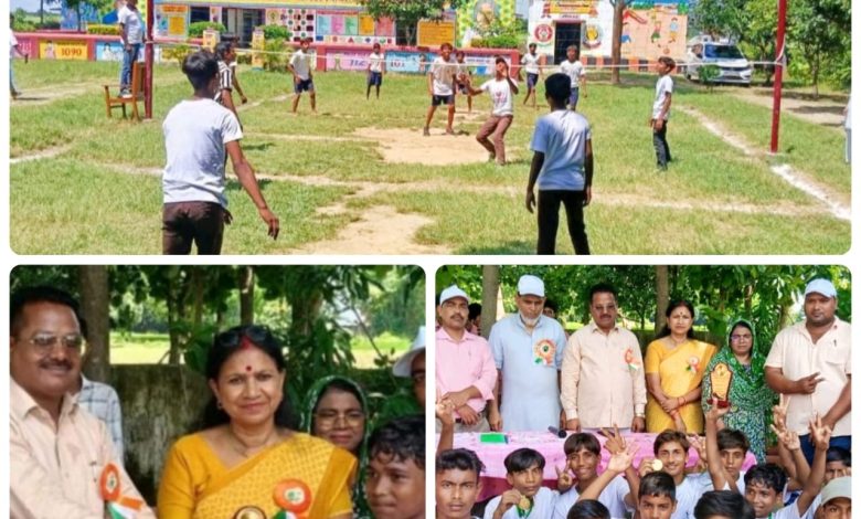 सिद्धार्थनगर। ब्लॉक स्तरीय वालीबॉल प्रतियोगिता पूर्व माध्यमिक विद्यालय देवरा चौधरी में सम्पन्न हुआ, जिसका शुभारम्भ खण्ड शिक्षा अधिकारी रामू प्रसाद ने फीता काटकर तथा खिलाड़ियों से परिचय प्राप्त करके किया। ब्लॉक स्तरीय वालीबॉल प्रतियोगिता में मेजबान पूर्व माध्यमिक विद्यालय देवरा चौधरी के अलावा पीएम श्री कम्पोजिट विद्यालय मधुबेनिया, कम्पोजिट विद्यालय काशीपुर और सूर्यकुडिया के बच्चों ने भाग लिया। पहला मुकाबला मधुबेनिया और सूर्यकुडिया के मध्य खेला गया, जिसमें मधुबेनिया ने पहले चक्र में 14 अंक से जीत हासिल कर फाइनल में अपना स्थान बना लिया। वहीं दूसरा मुकाबला काशीपुर और देवरा चौधरी के मध्य हुआ, जिसमें देवरा चौधरी ने काशीपुर को हराकर फाइनल के लिए अपना स्थान सुरक्षित कर लिया। फाइनल मैच का कड़ा मुकाबला देवरा चौधरी और मधुबेनिया के बीच हुआ, पहले चक्र में देवरा चौधरी ने मधुबेनिया को 18 अंक से पराजित किया वही दूसरे चक्र में माधुबेनिया ने देवरा चौधरी को 16 अंक से पराजित किया। बेहद कड़े और अन्तिम मुकाबले में देवरा चौधरी ने मधुबेनिया से 02 अंक की बढ़त हासिल कर जीत अपने नाम दर्ज कर लिया।कार्यक्रम में अन्त में जिला व्यायाम शिक्षिका श्रीमती सीमा द्विवेदी ने बच्चों को मेडल और ट्राफी देकर उनकी हौसला अफजाई की तथा बच्चों को खेल खेल के माध्यम में घर परिवार समाज का नाम रौशन करने की सलाह दी।कार्यक्रम का सफल आयोजन मेजबान पूर्व माध्यमिक विद्यालय देवरा चौधरी के प्रधानाध्यापक एवं पूर्व माध्यमिक शिक्षक संघ के जिला महामंत्री कलीमुल्लाह, ब्लॉक व्यायाम शिक्षक साधू शरण चौहान ने किया। उक्त अवसर पर प्रधानाध्यापक सेराज अहमद, फूलचन्द्र, राजेन्द्र प्रसाद, अभिषेक यादव, विजय चौधरी, नगमा बानो, नीलम देवी, मोहम्मद काशिफ, नागेश्वर प्रसाद, निर्मला, सरस्वती आदि मुख्य रूप से उपस्थित रहीं।