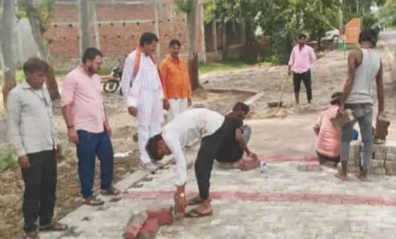 चेयरमैन ने किया इन्टरलॉकिंग कार्य का औचक निरीक्षण, गुणवत्ता पर दिये निर्देश