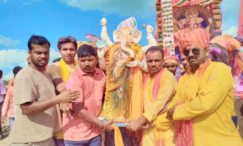 श्री गणेश विसर्जन जुलूस मे गाजे-बाजे के साथ निकला जुलूस,खूब उड़े अबीर-गुलाल