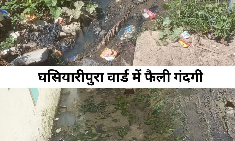घसियारीपुरा वार्ड मे गंदगी का फैला साम्राज्य, सफाई न होने से जनता गंदगी में रहने को हुई मजबूर