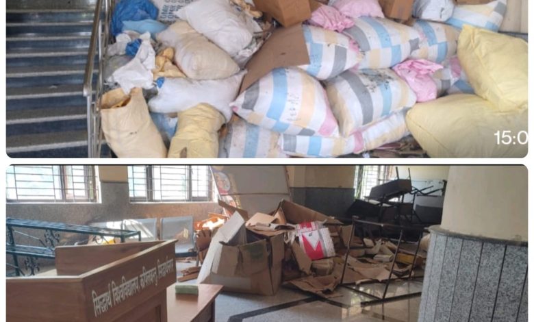कपिलवस्तु/सिद्धार्थनगर। सिद्धार्थ विश्वविद्यालय प्रशासनिक भवन को कचरा रखने का स्टोर रूम बन रखा है। दीक्षान्त समारोह स्थल के पीछे बरामदे में टूटे मेज, कुर्सी, कबाड़ फेंका हुआ है। जिसकी कोई साफ सफाई नहीं। सूत्र बताते है कि यहां मनमानी तरीके से अपने चहेतों को टेण्डर दे दिया जाता है। कुछ तो अन्दर खाने से ही निपटा दिया जाता है। साफ-सफाई की व्यवस्था का लाखों रूपये प्रतिवर्ष खर्च करने का टेण्डर होता है। लेकिन सफाई के नाम पर शून्य रहता है। सफाई व निर्देश की कमी के कारण विश्वविद्यालय परिसर के छात्रावास में रह रहे छात्रों के भोजन व्यवस्था में भी लापरवाही के कारण खाने वाले भोजन में छिपकली गिर जाती है और उस भोजन को व्यवस्थापक की लापरवाही से छात्रों को खिला भी दिया जाता है। जिससे कई छात्र – छात्राओं की सेहत बिगड़ गई। विशेष सूत्र से जानकारी मिली कि छात्रों की सेहत बिगड़ने की सूचना पर उपचार की व्यवस्था में लग गये। वही साफ-सफाई न होने के कारण परिसर में जंगली सूअरों का आतंक बना हुआ है।कुछ दिन पहले ही एक अधिकारी के कुत्ते पर सूअरों ने हमला कर दिया। सूचना है कि हमले से कुत्ते की मृत्यु हो गई। कही यह वहां रह रहे शिक्षकों के परिवार वालों को निशाना बनाये तो बड़ी घटना घट सकती है। परिसर की साफ-सफाई न हो पाना सुविधा शुल्क के कटघरे में खड़ा दिखाई देता है। यह सब किसके सह पर किया जा रहा है। सम्बन्धित विभाग ही समझें। अन्दर खाने में अव्यवस्था को लेकर तरह-तरह की चर्चाएं हो रही हैं।