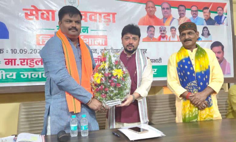 बलरामपुर। भारतीय जनता पार्टी कार्यालय अटल भवन पर प्रधानमंत्री नरेन्द्र मोदी के 75 वें जन्मदिन पर आयोजित होने वाले सेवा पखवाड़ा के तहत विभिन्न कार्यक्रम को लेकर मुख्य अतिथि क्षेत्रीय उपाध्यक्ष, जिला प्रभारी राहुल रस्तोगी ने जिला कार्यशाला को संबोधित किया। उन्होंने कहा कि इस बार प्रधानमंत्री नरेन्द्र मोदी का 75 वां जन्मदिन है पूरे देश में भारतीय जनता पार्टी इस दौरान सेवा के विभिन्न कार्यक्रम आयोजित किए जाएंगे। इस दौरान 17 सितम्बर को रक्तदान शिविर और स्वच्छता अभियान, नमो मैराथन, स्वास्थ्य शिविर, चित्रकला प्रतियोगिता, 25 सितम्बर को बूथ स्तर पर पं दीन दयाल उपाध्याय का जन्मजयंती, जिला संगोष्ठी का आयोजन, 2 अक्टूबर को गांधी जयंती पर स्वच्छता अभियान सहित विभिन्न प्रकार के कार्यक्रम आयोजित होंगे। जिला प्रभारी ने कहा कि विभिन्न कार्यक्रम हेतु अलग अलग पार्टी पदाधिकारियों को लगाया गया है सभी अपने दायित्व को निष्ठापूर्वक निभायें और बूथ स्तर पर सेवा पखवाड़ा के कार्यक्रम को पहुंचायें। विधायक तुलसीपुर कैलाशनाथ शुक्ला ने कहा कि सभी पदाधिकारियों और कार्यकताओं से अपेक्षा है कि प्रधानमंत्री नरेन्द्र मोदी के 75 वें जन्मदिन पर आयोजित होने वाले कार्यक्रम को सफलतापूर्वक संपन्न करेंगे। भाजपा जिलाध्यक्ष रवि कुमार मिश्रा ने मुख्य अतिथि क्षेत्रीय उपाध्यक्ष जिला प्रभारी राहुल राज रस्तोगी का स्वागत किया और 17 से 2 अक्टूबर तक आयोजित होने वाले सेवा पखवाड़ा की जिला कार्यशाला कार्यशाला की प्रस्तावना को रखा। नगरपालिका अध्यक्ष प्रतिनिधि अनूप चंद्र गुप्ता ने सभी के प्रति आभार व्यक्त किया। इस दौरान विधायक तुलसीपुर कैलाशनाथ शुक्ला, ब्लाक प्रमुख हेमंत जायसवाल, महिपाल चौधरी, वरूण सिंह,और कार्यकर्ताओं की उपस्थिति रही।