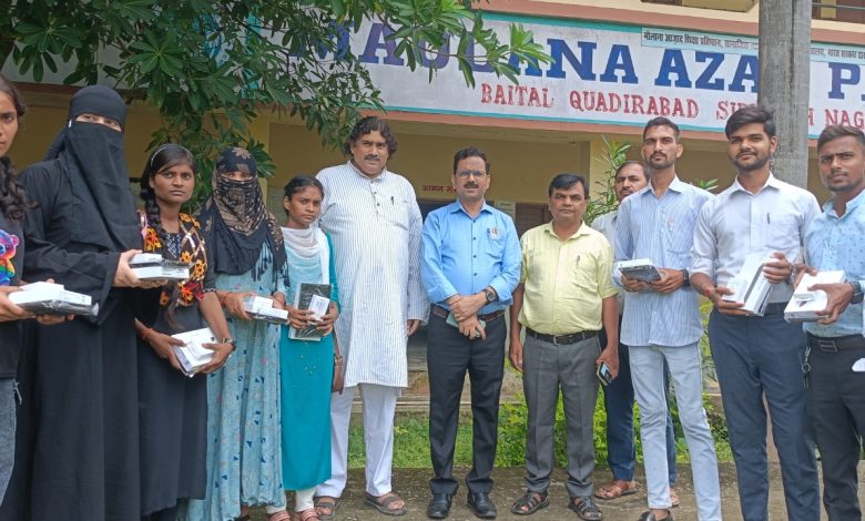 डुमरियागंज। छात्र छात्राओं को तकनीकी शिक्षा में किसी प्रकार की समस्या न हो,इसके लिए सरकार द्वारा टेबलेट का वितरण कराया जा रहा है।इससे छात्र घर बैठे अपनी आवश्यकता के अनुसार आनलाइन पढ़ाई कर सकेंगे।सरकार स्वामी विवेकानंद युवा सशक्तिकरण योजना के तहत छात्र छात्राओं को निशुल्क टैबलट वितरण कर रही है।शनिवार को क्षेत्र के मौलाना आजाद पीजी कालेज बायताल में छात्र छात्राओं को निशुल्क टैबलट वितरण कार्यक्रम का आयोजन किया गया।कार्यक्रम में मुख्य अतिथि के रूप में एसडीएम डुमरियागंज राजेश कुमार व विशिष्ट अतिथि के रूप में इरफान मालिक ने भाग लिया।उपस्थित छात्र छात्राओं को संबोधित करते हुये एसडीएम ने कहा कि आप सभी इस टैबलट का सदुपयोग कर इससे बेहतर ज्ञान प्राप्त कर बहुत आगे बढ़ सकते हैं और ऊचाईयों पर जा सकते हैं।कार्यक्रम की अध्यक्षता कालेज के प्रबंधक मालिक इकबाल यूसुफ ने की व संचालन काजी महमूद अहमद ने किया।इस दौरान कालेज की 282 छात्र छात्राओं में टैबलट वितरण किया गया।इस मौके पर कालेज के प्राचार्य डाक्टर अखलाक हुसैन,नदीम अहमद,उमैर अहमद,मोहम्मद वामिक,राजेश कुमार वर्मा,सहित अन्य लोग उपस्थित रहे। इसी क्रम में डुमरियागंज क्षेत्र के अबुल कलाम आजाद एजुकेशनल इंस्टीच्यूट पी जी कालेज जबजौआ में डुमरियागंज विधायक सैय्यदा खातून के द्वारा छात्र छात्राओं में निशुल्क टैबलेट वितरण किया गया।इस मौके पर विधायक ने कहा कि टैबलट का वितरण कर शिक्षा को और सशक्त बनाने व बच्चों को डिजिटल युग से जोड़ने की दिशा में एक महत्वपूर्ण कदम है।इस दौरान कालेज के 288 छात्र छात्राओं में टैबलट वितरण किया गया। इस मौके पर कालेज के प्राचार्य सहित सांसद प्रतिनिधि राजेश द्विवेदी,कसीम पाल,अफसर रिजवी व अन्य लोग उपस्थित रहे।