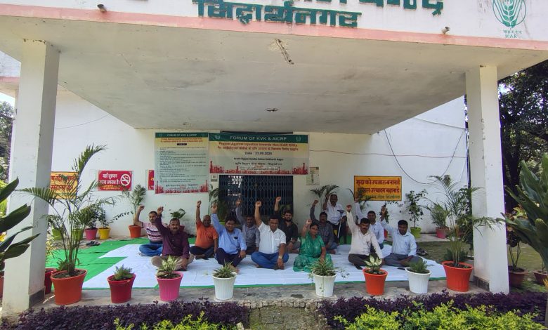 आईसीएआर की गलत नीतियों के विरोध में कृषि विज्ञान केंद्रों का धरना-प्रदर्शन