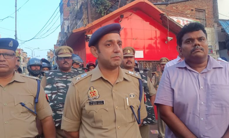 दशहरा एवं दुर्गा पूजा पर्व को लेकर डीएम-एसपी ने किया फ्लैग मार्च