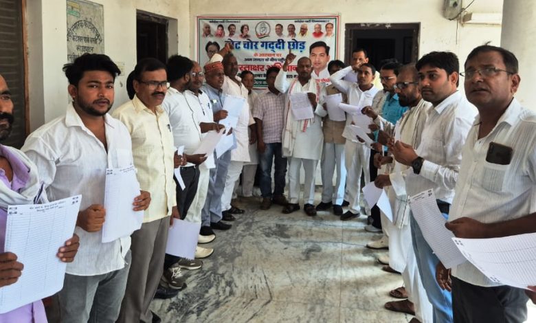 बस्ती। कांग्रेस अध्यक्ष विश्वनाथ चौधरी की अध्यक्षता में पार्टी नेताओं की बैठक सम्पन्न हुई। बैठक में प्रदेश नेतृत्व के आवाहन पर जिले में ‘वोट चोर-गद्दी छोड़’ हस्ताक्षर अभियान की शुरुआत की गई। यह अभियान जिले के सभी मंडलों, ब्लॉकों, नगर पालिका और नगर पंचायत क्षेत्रों में एक साथ चलाया जायेगा। कांग्रेस अध्यक्ष विश्वनाथ चौधरी ने कहा कि नेता प्रतिपक्ष राहुल गांधी ने वोट चोरी के आरोपों को लेकर साक्ष्यों के साथ देश के सामने अपनी बात रखी थी। इसके बाद लोकतांत्रिक प्रक्रिया को लेकर देशभर में गंभीर बहस छिड़ी है। उन्होंने आरोप लगाया कि लोकतंत्र को हाईजैक करने की सुनियोजित कोशिश की जा रही है। कांग्रेस कार्यकर्ता इसका पर्दाॅफांश करेंगे। उन्होंने बताया कि कांग्रेस कार्यकर्ता घर-घर जाकर लोगों को जागरूक करेंगे और राष्ट्रपति को भेजे जाने वाले मांग पत्र पर हस्ताक्षर कराएंगे। इस मांग पत्र में मशीन-रीडेबल वोटर लिस्ट को सार्वजनिक करना, जोड़े और हटाए गए मतदाताओं की फोटो सहित सूचियां जारी करना, एक सुलभ शिकायत निवारण प्रणाली लागू करना और मतदाताओं के दमन में शामिल अधिकारियों व एजेंटों पर कानूनी कार्रवाई जैसे मुद्दे शामिल किए गए हैं। जिलाध्यक्ष ने कहा कि यूपी लोकसभा चुनाव नतीजों में गठबंधन दलों ने सत्ता पक्ष को लगभग धराशायी कर दिया था, इसके बावजूद वे सरकार बनाने से वंचित रह गए, जो वोट चोरी का स्पष्ट संकेत है। इस संदेश को लेकर कांग्रेस कार्यकर्ता लोगों के घर-घर जाकर जागरूकता अभियान चलाने के साथ ही कांग्रेस के नीति, कार्यक्रम से लोगों को जोड़ेंगे। ‘वोट चोर-गद्दी छोड़’ हस्ताक्षर अभियान की शुरुआत के दौरान मुख्य रूप से बृजेश कुमार आर्य, शौकत अली नन्हू, अलीम अख्तर, राम धीरज चौधरी, शिव विभूति मिश्रा, श्रवण पाण्डेय, राहुल चौधरी, शेर मोहम्मद, लालजीत पहलवान, राम बचन भारती, राम पुरन चौधरी, आनंद कुमार, मोहम्मद अशरफ अली, सर्वेश शुक्ला, शोभित चौधरी, लक्ष्मी यादव, दूधनाथ पटेल, चंद्रशेखर वर्मा, रामबाबू कल्पू, अफजल हुसैन, उमेश उपाध्याय, विश्वजीत, राम सिंह, बृजभान कनौजिया, दुर्गेश चौधरी, संजय कुमार प्रशांत वर्मा के साथ ही पार्टी के अनेक पदाधिकारी, कार्यकर्ता उपस्थित रहे।