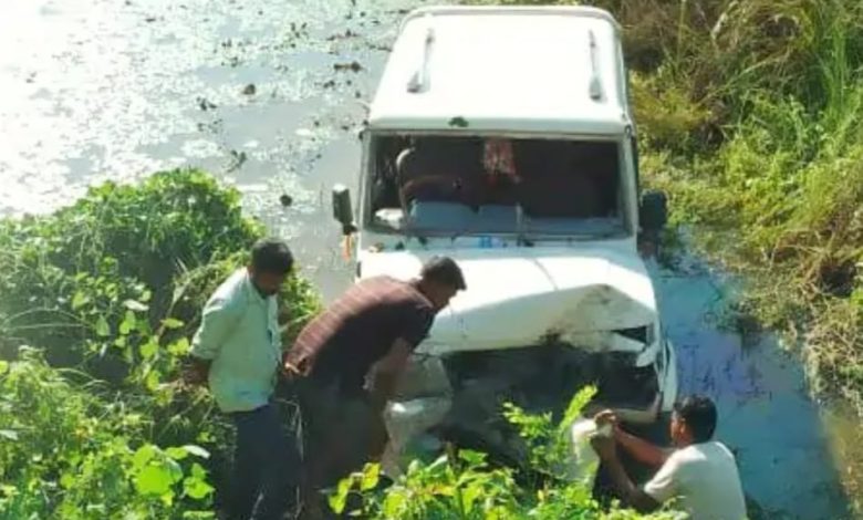 हादसा: अनियंत्रित बोलेरो के गहरे गड्ढे में गिरने से तीन लोग हुए घायल