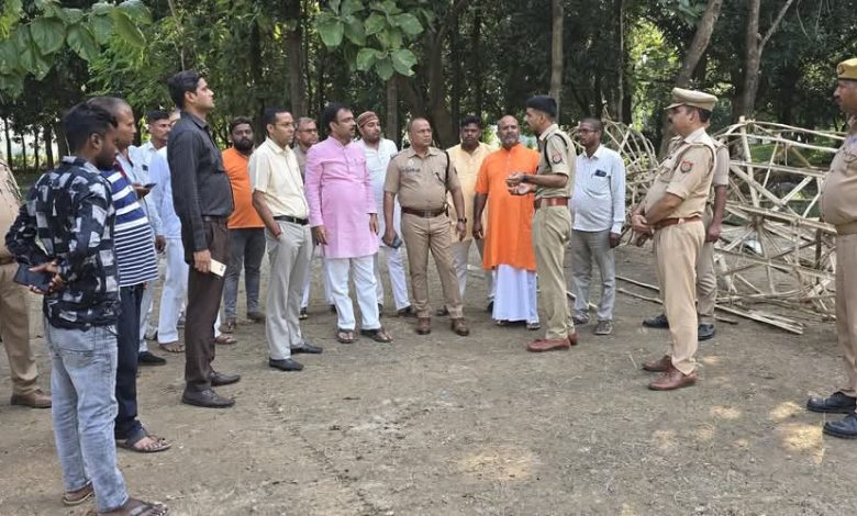 उसका बाजार। कस्बा के उसका राजा में स्थित ऐतिहासिक दशहरा मेला स्थल रामलीला बाग का सोमवार को चेयरमैन प्रतिनिधि हेमन्त कुमार जायसवाल और ईओ अभिनव श्रीवास्तव की उपस्थिति में एडीएम गौरव श्रीवास्तव ने निरीक्षण किया है। उन्होंने मौके पर उपस्थित पुलिस बल को दो अक्तूबर को लगने वाले दशहरा मेला को शांतिपूर्ण तरीके से संपन्न कराने का दिशा निर्देश दिया है। एएसपी प्रशांत कुमार प्रसाद ने ट्रैफिक पार्किंग व्यवस्था, भीड़ नियंत्रण, संदिग्ध व्यक्तियों पर पैनी नजर के साथ सीसीटीवी निगरानी बढ़ाने का निर्देश दिया है। इस अवसर पर मेला आयोजक लालबहादुर दास, नगर पंचायत अध्यक्ष प्रतिनिधि हेमन्त कुमार जायसवाल, सोमनाथ मिश्र, अंगद साहनी, विनोद वर्मा, सच्चिदानंद चौबे आदि रहे।