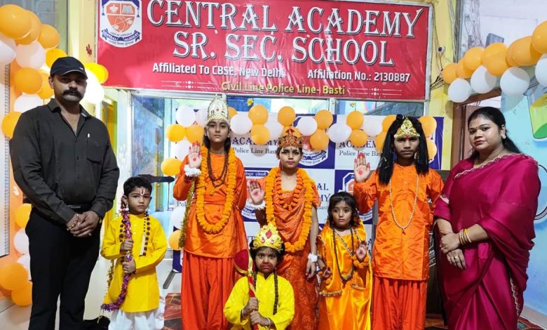 बस्ती। सेन्ट्रल एकेडमी में दशहरा का पर्व उल्लास और सांस्कृतिक कार्यक्रमों के साथ मनाया गया। मंगलवार को छात्रों ने दुर्गा पूजा से जुड़े विभिन्न आयामों पर शानदार प्रस्तुति दिया। निदेशक जय प्रकाश तिवारी, सीमा तिवारी ने छात्रों को बताया कि माता-पिता संसार के प्रथम देवता है। शक्ति की आराधना से जीवन में उल्लास आता है। भारतीय जीवन दर्शन अन्याय पर न्याय के विजय का संदेश देता है। सहायक निदेशक अनुज तिवारी, प्रधानाचार्य दीपिका तिवारी, अम्बुज तिवारी, नलिनी तिवारी ने कहा कि दुर्गा पूजा, दशहरा का पर्व हमें अन्याय के विरूद्ध निरन्तर संघर्ष करने का साहस देता है। आदि शक्ति मां भगवती ने महिषासुर का मर्दन किया और मर्यादा के राम ने रावण पर विजय प्राप्त किया। इस अवसर पर छात्र-छात्राओें राजश्री तिवारी,रौनक, शिवाकान्त, फरहान, अलका, साक्षी, अंजली, एन्जल, मोहिनी, अलका, आदिति मिश्रा, दिव्यांशी, अन्वी, निषिका, गरिमा, मानसी, खुशी, प्रियाशी, रवि, आरोही, रितिका, सौम्या, श्रेष्ठ, प्रांजल, देवांश, अंशी, श्रद्धा, रितिक, पारूल, अक्षय, निशिता, निधि आदि नवरात्रि, मां भगवती आराधना, श्रीरामलीला पर केन्द्रित सांस्कृतिक कार्यक्रम और डांडियां प्रस्तुत कर मन मोह लिया। बाल कलाकारों ने श्रीराम, लक्ष्मण, भगवती सीता की झांकी निकाली और रावण दहन किया गया। इस अवसर पर शिक्षकों और छात्रों को पुरस्कृत किया गया।कार्यक्रम को सम्पन्न कराने में मुख्य रूप से आबिद अरशद, द्विजेन्द्र मिश्र, प्रियंका त्रिपाठी, ए.के. मिश्र, प्रतिमा, शिखा, महेश पाण्डेय, रूचि, जैवी, श्रेया, शिखा, सुधा गौड़ आदि ने छात्रों को नवराित्र के महत्व की जानकारी दिया। कार्यक्रम के अंत में फलाहार कराया गया।