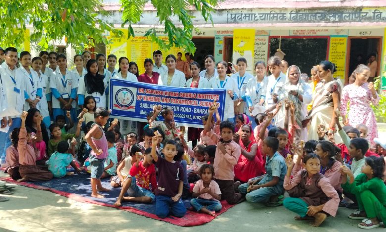 बहराइच। डा. सर्वेश कुमार शुक्ला ग्रुप आफ इंस्टीट्यूटशंस सबलापुर के बीएससी नर्सिंग के छात्र-छात्राओं ने सबलापुर आंगनबाड़ी केंद्र का भ्रमण किया और केंद्र पर पढ़ रहें बच्चों की सेहत भी जांची। आंगनबाड़ी के बच्चों को स्वास्थ्य से संबंधित जानकारियां भी दी गई एंव जांच के दौरान जो बच्चें स्वस्थ पाएं गए उनको नर्सिंग प्राचार्य हरीश नागर ने उपहार देकर प्रोत्साहित किया गया और सभी बच्चों को अल्पाहार भी दिया गया। इस मौके पर अस्टिटेंट प्रोफेसर फूलचंद्र डावरिया, प्रतीज्ञा पाठक, आंचल सिंह,लवीशा प्रजापति,सुनिधि शुक्ला समेत बीएससी नर्सिंग के छात्र-छात्राएं मौजूद रहें।