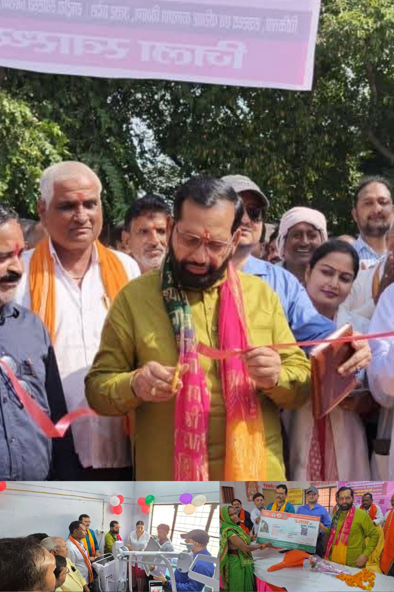 विशेश्वरगंज/ बहराइच। बहुत दिनों से प्रतीक्षा की राह में बैठे विशेश्वरगंज के सभी क्षेत्र वासियों को आज डिजिटल एक्सरे मशीन का उद्घाटन विधायक सुभाष त्रिपाठी ने करके क्षेत्र वासियों के स्वास्थ्य सेवाओं के लिए सौंप दिया। सेवा पखवाड़ा कार्यक्रम के अंतर्गत सामुदायिक स्वास्थ्य केंद्र विशेश्वरगंज में स्वास्थ्य मेगा कैंप का आयोजन किया गया। इसके अंतर्गत लोगों के मुफ्त संपूर्ण परीक्षण कर इलाज के लिए दवाएं उपलब्ध कराई गई। कार्यक्रम के मुख्य अतिथि पयागपुर विधायक सुभाष त्रिपाठी रहे। कार्यक्रम के दौरान पयागपुर विधायक सुभाष त्रिपाठी को सामुदायिक स्वास्थ्य केंद्र अधीक्षक पहुंचकटटा प्रवीण पांडेय के द्वारा माल्यार्पण कर अंग वस्त्र एवं फोटो भेंट किया गया। बारी-बारी से सभी आए हुए लोगों को माल्यार्पण कर अंग वस्त्र भेंट किया गया। मेगा कैंप आयोजन के दौरान क्षेत्र वासियों के लिए परीक्षण कैंप का भी आयोजन किया गया जिसमें सभी लोगों ने पहुंचकर विभिन्न प्रकार के परीक्षण अर्थात चेकअप कराया। मुख्य अतिथि विधायक पयागपुर सुभाष त्रिपाठी ने आंगनवाड़ी विभाग द्वारा आयोजित महिलाओं की गोद भराई व बच्चों को अन्नप्राशन और लाभार्थियों को आयुष्मान कार्ड वितरित किया । सीएचसी पहुंचकटटा विश्वेश्वरगंज पर अब लोगों का एक्स-रे आसानी से हो जाएगा जिससे अब लोगों को इधर-उधर एक्स-रे कराने के लिए भटकना नहीं पड़ेगा। कार्यक्रम के दौरान निशंक त्रिपाठी, सामुदायिक स्वास्थ्य केंद्र अधीक्षक पहुंचकटटा प्रवीण पांडेय सहित सभी स्वास्थ्य कर्मचारी एवं क्षेत्र के सम्मानित जन तथा जनता जनार्दन मौजूद रहे।
