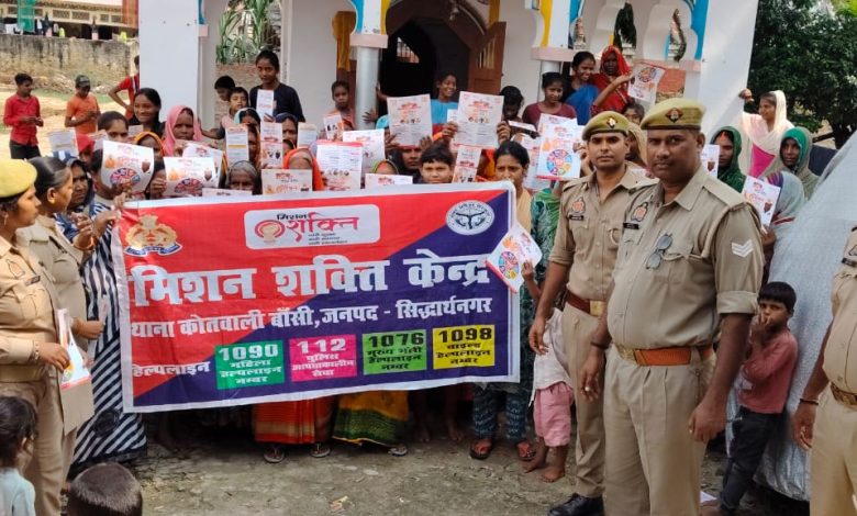 सिद्धार्थनगर। पुलिस अधीक्षक महोदय सिद्धार्थनगर डा. अभिषेक महाजन द्वारा महिलाओं एवं बालिकाओ की सुरक्षा में चलाए जा रहे अभियान के तहत अपर पुलिस अधीक्षक महोदय प्रशांत कुमार प्रसाद के पर्यवेक्षण में क्षेत्राधिकारी महोदय मयंक द्विवेदी तथा प्रभारी निरीक्षक गौरव सिंह के कुशल नेतृत्व में मिशन शक्ति के अन्तर्गत महिला सशक्तिकरण कार्यक्रम के तहत थाना क्षेत्र बांसी के विभिन्न सार्वजनिक स्थानों और ग्राम तारा गुजरौलिया में जाकर बालिकाओं/महिलाओं को मिशन शक्ति के तहत सरकार के विभिन्न सरकारी योजनाओं के बारे मे जैसे कि प्रधानमंत्री मान बंद योजना मुख्यमंत्री सामूहिक विवाह योजना रानी लक्ष्मी बाई रानी लक्ष्मी बाई बाल एवं महिला सम्मान कोर्स नारी शक्ति वंदन मातृशक्ति संम्बल निराश्रित महिला पेंशन योजना,मुख्यमंत्री कन्या सुमंगला योजना आदि अन्य योजनाओ से संबंधी जानकारी को बताया गया। मिशन शक्ति फेज 5.0 कार्यक्रम के अंतर्गत जानकारी देते हुए विभिन्न हेल्पलाइन नंबर- 112, पुलिस आपातकालीन सेवा 1090 वूमेन पावर,1076, मुख्यमंत्री हेल्पलाइन 108 एम्बुलेंस सेवा1930 साइबर अपराध हेल्फलनसेवा 101अग्निशमन सेवा के बारे में जानकारी दी गई व जागरूक किया गया । टीम में उपनिरीक्षक चातुर्भज तरह-तरह की योजनाएं बताए गए महिलाओं को जागरूक के लिए शक्ति टीम उप निरीक्षक चतुर्भुज पाठक,हे0का0 बीरबल यादव,का0 सर्वेश यादव, देवेंद्र उपाध्याय, पुनीता, केतकी आदि।