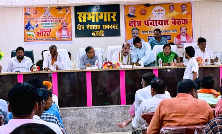 बस्ती। मंगलवार को क्षेत्र पंचायत रामनगर की बैठक विकास खण्ड के सभागार में ब्लाक प्रमुख रामनगर यशकान्त सिंह की अध्यक्षता में सम्पन्न हुई। बैठक में नेक्स्ट जेन जीएसटी सुधार के समर्थन और प्रधानमंत्री व वित मंत्री के आभार संबंधी प्रस्ताव पर क्षेत्र पंचायत सदस्यों एवं प्रधानगण द्वारा समर्थन प्रस्ताव दिया। प्रधानमंत्री के विकसित भारत के विजन 2047 के संबंध पर चर्चा की गई। बैठक में वन नेशन वन इलेक्शन, आवास योजना ग्रामीण, मुख्यमंत्री आवास योजना ग्रामीण, राष्ट्रीय ग्रामीण आजीविका मिशन योजना, बाल विकास परियोजना, समाज कल्याण विभाग की योजनाए, स्वास्थ विभाग की योजनाए, कृषि विभाग, पंचायती राज विभाग के कार्यक्रमों पर विस्तार से चर्चा कर समीक्षा की गई। इस अवसर पर खण्ड विकास अधिकारी राजेश कुमार सिंह, विजय कुमार चौधरी, देवेन्द्र सिंह, डा0 बलराम चौरसिया, राजन कुमार, स्वामी नाथ, धीरेन्द्र त्रिपाठी, कुसुमलता सिंह, सुनील कुमार दूबे, रामू, कुलभूषण श्रीवास्तव, सदानन्द शुक्ल, सुबाष यादव सहित अन्य लोग मौजूद रहे।