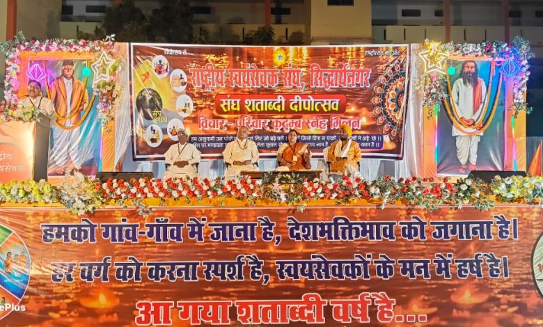 सिद्धार्थनगर। राष्ट्रीय स्वयंसेवक संघ, सिद्धार्थनगर विभाग द्वारा रविवार को रघुवर प्रसाद जायसवाल सरस्वती शिशु मंदिर इंटर कॉलेज तेतरी बाजार में कुटुंब प्रबोधन स्नेह मिलन कार्यक्रम में “दीपोत्सव से राष्ट्रोत्सव” का आयोजन अत्यंत उत्साह, श्रद्धा और गरिमा के साथ किया गया। कार्यक्रम के मुख्य वक्ता संघ के प्रांत प्रचारक श्री रमेश जी ने कहा कि भारतीय समाज की मूल इकाई व्यक्ति नहीं, बल्कि कुटुंब है। कृषि, संस्कृति, संस्कार और नैतिकता कृ यही भारतीय जीवन के आधार स्तंभ हैं। उन्होंने कहा कि संघ ‘वसुधैव कुटुम्बकम्’ के सिद्धांत को सर्वाेपरि मानता है, जो संपूर्ण विश्व को एक परिवार के रूप में देखने की भावना देता है। यह दृष्टिकोण भारत की प्राचीन सोच और वैश्विक कल्याण के आदर्श का प्रतीक है। श्री रमेश जी ने कहा कि संघ का कार्य केवल संगठन निर्माण नहीं, बल्कि समाज में समरसता, सहयोग और आत्मीयता को सशक्त बनाना है। स्वयंसेवकों का समर्पण ही समाज परिवर्तन की सच्ची आधारशिला है। कार्यक्रम में गोरक्ष प्रांत के प्रांत बौद्धिक शिक्षण प्रमुख एवं शिवपति महाविद्यालय, शोहरतगढ़ के प्राचार्य डॉ. अरविंद सिंह ने कहा कि आज परिवार का टूटना और बिखरना समाज की सबसे बड़ी समस्या बन गया है। उन्होंने कहा कृ “हमें कार्य के प्रति जोर लगाना है, शोर नहीं करना है।” उन्होंने यह भी कहा कि कुटुंब ही वह कार्यशाला है जहां संस्कार, संस्कृति और नैतिक मूल्य के माध्यम से सच्चे मानव का निर्माण होता है। सिद्धार्थ विश्वविद्यालय की कुलपति प्रो. कविता शाह ने कहा कि यह अवसर विशेष है जब हम दीपोत्सव से राष्ट्रोत्सव की दिशा में अग्रसर हो रहे हैं। उन्होंने कहा कृ “सनातन ही संघ है, भारत ही संघ है और संघ ही सनातन है।” संघ के कार्यों में भावनात्मक एकता, कर्तव्यनिष्ठा और सेवा की भावना समाज को एक सूत्र में पिरोती है। अंतर्राष्ट्रीय भजन गायक सरदार रोमी ने अपनी मधुर प्रस्तुतियों से वातावरण को भक्ति और उत्साह से भर दिया। कार्यक्रम का शुभारंभ दीप प्रज्वलन और एकलगीत के साथ हुआ। तत्पश्चात सरस्वती विद्या मंदिर परिवार के छात्रों ने विविध सांस्कृतिक कार्यक्रमों की आकर्षक प्रस्तुतियां दीं। अंत में मां सरस्वती की आरती के साथ कार्यक्रम का समापन हुआ। इस अवसर पर सह प्रांत प्रचारक सुरजीत, विभाग संघचालक रामचंद्र मुंशी जिला संघचालक गोकुल गोयल, विभाग प्रचारक राजीव नयन, प्रकाश झा, डा0 मयंक, सह विभाग प्रचारक अजीत, विभाग कार्यवाह शिवमूर्ति, सह विभाग कार्यवाह हरिश्चंद्र जी जिला प्रचारक विशाल, नागेंद्र, विनय, जिला कार्यवाह शिवेंद्र सिंह, सह जिला कार्यवाह अविनाश जायसवाल, मनोज शर्मा , नंदलाल रस्तोगी, शंभूनाथ गुप्ता, सौरभ धनन्जय रस्तोगी, मोहित जी, राजकु