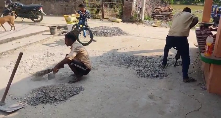 पचपेड़वा। नगर पंचायत पचपेड़वा द्वारा सिसहानिया वार्ड में सी सी रोड निर्माण में भारतीय किसान यूनियन भानू के लोगों द्वारा निर्माण कार्य में हुए भ्रष्टाचार को लेकर मुख्यमंत्री को किए गए शिकायत का संज्ञान लेकर जिला प्रशासन द्वारा जांच के बाद दिए गए सख्त निर्देश पर जगह जगह हैमर से तोड़कर रिपेयरिंग का कार्य शुरू किया गया है। भारतीय किसान यूनियन भानू की मांग ज्।ब् टीम द्वारा रोड के सामग्री को निकालकर लेबोरेट्री में जांच की मांग थी जो कि अभी तक पूरा नहीं हुआ है। रविवार को ठेकेदार द्वारा आनन फानन में फिर से रिपेयरिंग किया गया। सड़क निर्माण में हुए भ्रष्टाचार पर नगर पंचायत अध्यक्ष पर सवालिया निशान खड़ा हो गया है। नगर पंचायत पचपेड़वा में अधिकतर निर्माण कार्य नगर पंचायत अध्यक्ष के घराने द्वारा कराए जाने की शिकायत पर जांच हुआ था जो कि अभी बहुत कार्यों का जांच होना शेष है।