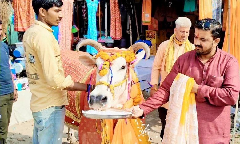 गोपाष्टमी के अवसर पर जिले के चर्चित गौ सेवक के आवास पर गौ माता की पूजा