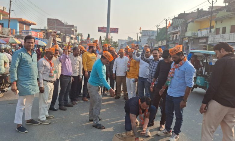 बांसी। बिहार में मिली प्रचंड जीत से खुश भाजपा पदाधिकारियों और कार्यकर्ताओं ने रोडवेज चौराहा पर पटाखा फोड़कर और एक दूसरे को मिठाई खिलाकर खुशी का इजहार किया। नगर अध्यक्ष कुबेर बारी, पूर्व सभासद मंगल चौरसिया और अमय पांडेय के नेतृत्व में भाजपा के पदाधिकारी और कार्यकर्ता नारेबाजी करते हुए रोडवेज चौराहा पर पहुंचे और वहां पहुंचकर आतिशबाजी किया। इसके बाद सब ने एक दूसरे को मिठाई खिलाकर खुशी व्यक्त किया। परिणाम से खुश नगर अध्यक्ष कुबेर बारी ने कहा कि यह प्रचण्ड जीत भाजपा की नीतियों और विकास के लिए किए गए कार्य की देन है। उन्होंने कहा कि बिहार के लोग भाजपा और जनतादल यूनाइटेड के साझा सरकार द्वारा किए गए विकास कार्यों से संतुष्ट है। इस अवसर पर राम शरण मौर्या, हरगोविंद साहू, बजरंगी वर्मा,प्रमोद कुमार हिन्दू, अंगद वर्मा, मनोज यादव, निखिल अग्रहरी, रामबचन मौर्य, हरिकेश सिंह, सौरभ सिंह, धर्मेंद्र यादव, नीरज गिरी,रमेश मौर्य, संजय रावत, ओमप्रकाश बारी, संतोष गौतम, विंध्याचल चौरसिया, किशन अग्रहरि, प्रदीप मिश्र, सौरभ पांडेय, कुवर त्रिपाठी आदि उपस्थित रहे।