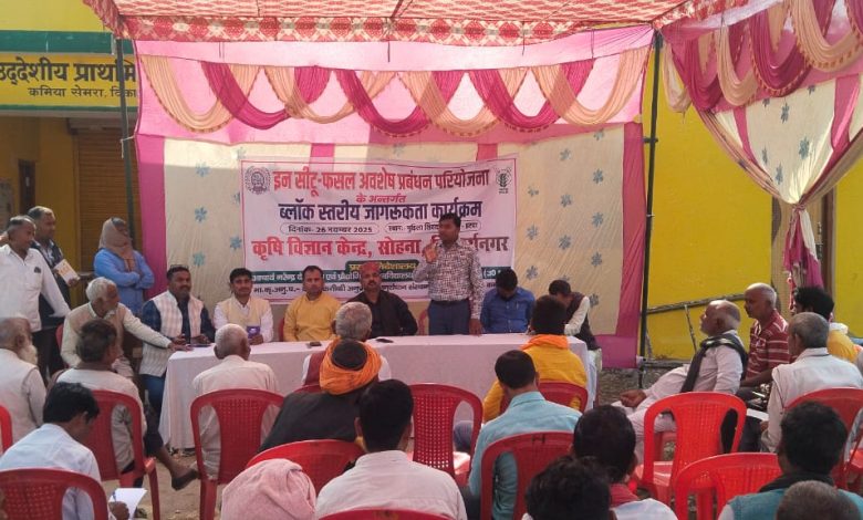 फसल अवशेष प्रबंधन पर ब्लॉक स्तरीय जागरूकता कार्यक्रम आयोजित