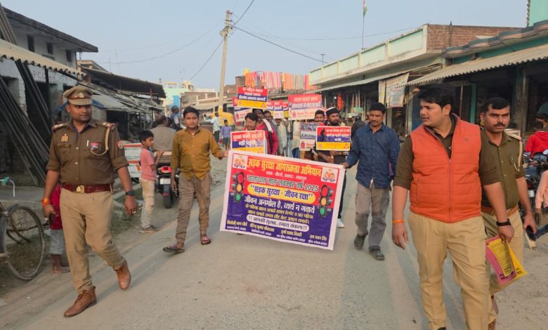 थानाध्यक्ष टीएन मौर्या ने बौंडी कस्बे में रैली निकालकर दी यातायात की जानकारी