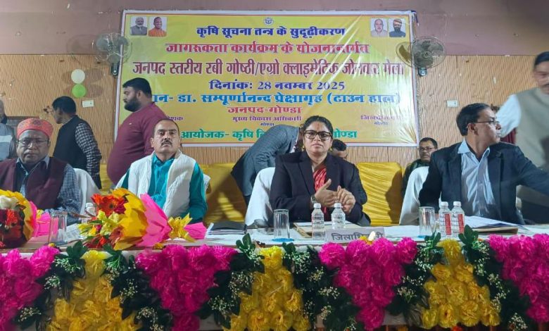 गोन्डा। गोन्डा जनपद के टाउन हॉल में कृषि विभाग द्वारा जनपद स्तरीय रबी गोष्ठी एवं एग्रो क्लाइमेटिक जोनल मेले का आयोजन किया गया।जिसका उद्घाटन जिलाधिकारी श्रीमती प्रियंका निरंजन एवं केन्द्रीय विदेश राज्य मंत्री के प्रतिनिधि रमाशंकर मिश्र द्वारा किया गया। डीएम ने अपने उद्बोधन में किसानों का आह्वान किया कि वे रासायनिक उर्वरकों पर अपनी निर्भरता कम करते हुए जैविक खादों के प्रयोग की तरफ उन्मुख हों। उन्होंने कृषि विशेषज्ञों के द्वारा बताई जाने वाली उत्पादन तकनीक अपनाने के लिए भी कृषकों को प्रेरित किया।उप कृषि निदेशक प्रेम कुमार ठाकुर ने समस्त प्रतिभागियों का स्वागत करते हुए जनपद में फसलवार आच्छादन की प्रगति और बीजों की उपलब्धता के साथ ही साथ विभाग द्वारा संचालित योजनाओं के विषय में भी जानकारी दी।जिला उद्यान अधिकारी सुश्री रश्मि शर्मा एवं जिला गन्ना अधिकारी सुनील कुमार सिंह ने अपने-अपने विभाग द्वारा संचालित योजनाओं के विषय में कृषकों को जानकारी उपलब्ध कराई।जिला कृषि अधिकारी चंद्र प्रकाश सिंह ने रबी फसलों के उत्पादन के संबंध में विभाग द्वारा अपनाई जा रही रणनीति के विषय में कृषकों को जानकारी दी।कृषि विज्ञान केंद्र मनकापुर के वरिष्ठ वैज्ञानिक डॉक्टर एस के वर्मा ने कृषि विविधीकरण के विषय में कृषकों को अवगत कराया।कृषि विज्ञान केंद्र मनकापुर के वैज्ञानिक डॉक्टर हनुमान प्रसाद पांडे ने रबी फसलों के उत्पादन तकनीक के विषय में कृषकों को जानकारी दी।कृषि विज्ञान केंद्र गोपाल ग्राम के वैज्ञानिक इंजी. मिथिलेश कुमार झा ने कृषि यंत्रीकरण और प्राकृतिक खेती के विषय में कृषकों को जानकारी प्रदान की। प्रगतिशील कृषक अनिल चंद्र पांडे ने अपने अनुभवों को कृषकों के मध्य साझा किया। कार्यक्रम के अंत में उप संभागीय कृषि प्रसार अधिकारी श्री शिव शंकर चौधरी द्वारा सभी को धन्यवाद ज्ञापित करते हुए कार्यक्रम के समापन की घोषणा की गई।कार्यक्रम का संचालन वरिष्ठ प्राविधिक सहायक आरपीएन सिंह ने किया।कार्यक्रम में उपनिदेशक रेशम आर एन मल्ल,डिप्टी आरएमओ नृपंजय कुमार पाठक,अग्रणी जिला प्रबंधक एवं अन्य अनुषांगिक विभागों के अधिकारियों तथा बड़ी संख्या में किसानों के द्वारा प्रतिभाग किया गया।