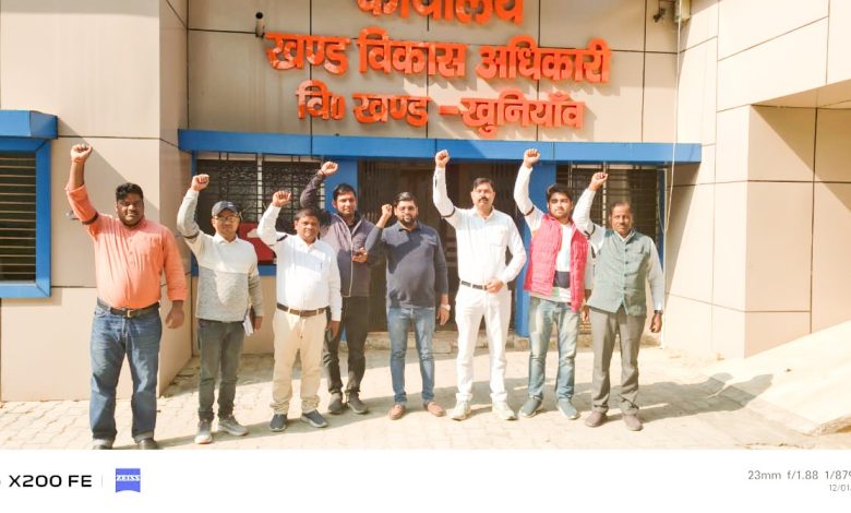 इटवा/सिद्धार्थनगर। खुनियांव विकास खण्ड के सचिवों ने ग्राम पंचायत अधिकारी व ग्राम विकास अधिकारी समंवय समिति के बैनर तले सोमवार को ऑनलाइन हाजिरी व गैर विभागीय काम लिए जाने के विरोध में बांह पर काली पट्टी बांध कर शांतिपूर्ण सत्याग्रह आंदोलन किया। जानकारी के अनुसार खुनियांव विकास खण्ड के सचिवों ने 01 दिसम्बर 2025 को “ग्राम पंचायत अधिकारी व ग्राम विकास अधिकारी समंवय समिति” के बैनर तले सोमवार को कर्मचारियों ने बांह पर काली पट्टी बांध कर विरोध प्रदर्शन किया। कर्मचारी नेताओं का कहना है कि ऑनलाइन हाजिरी व्यवस्था जमीनी हकीकत से मेल नहीं खाती है। ग्रामीण क्षेत्रों में नेटवर्क की समस्या के कारण कर्मचारियों को बेवजह परेशान होना पड़ रहा है। कर्मचारियों के हित को ध्यान में रख कर हमारा संगठन ऑनलाइन हाजिरी व्यवस्था के विरोध में शांतिपूर्ण धरना प्रदर्शन का आह्वान किया है। इस लिए 01 दिसम्बर से 04 दिसम्बर 2025 तक काली पट्टी बांध कर शासकीय कार्य किया जाएगा। यदि मांगे पूरी न हुई तो आंदोलन को आगे और तेज किया जाएगा। 05 दिसम्बर से सभी सचिव अपने नीजि वाहन का प्रयोग बन्द कर देंगे। 15 दिसम्बर से सभी सचिव अपना डांेगल ब्लाक पर जमा कर देंगे। इस अवसर पर विरोध प्रदर्शन में प्रमुख रूप से मोईदुर्रहमान, पियूष पाण्डेय, तारिक, सुशील द्विवेदी, सर्वजीत यादव, लवकुश, अनुराग, देवदत्त चौधरी समेत अन्य कर्मचारी मौजूद रहे।