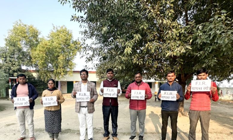 एफआईआर दर्ज के विरोध में सौपा ज्ञापन